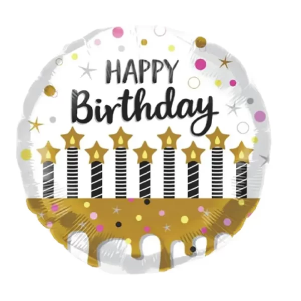 بادکنک فویلی گرد هپی طرح شمع مشکی طلایی