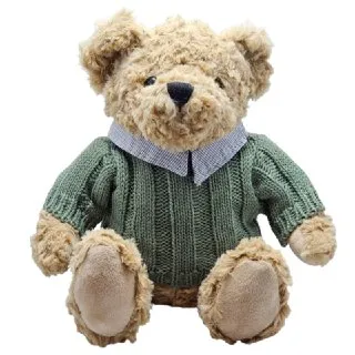 “عروسک خرسی نرم و پشمالو با پلیور سبز، مناسب برای هدیه و دکور.”