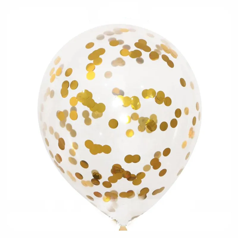 بادکنک شفاف پولکدار طلایی، انتخابی شیک و لوکس برای تزئین جشنها و مراسمهای خاص.