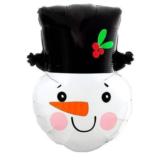 بادکنک فویلی آدم‌برفی با کلاه مشکی، مناسب برای تزئینات کریسمس و تم زمستانی.