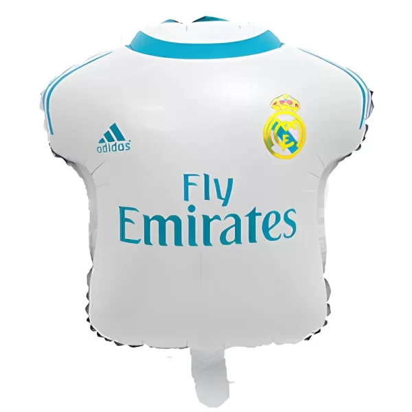 بادکنک فویلی طرح لباس رئال مادرید، مناسب برای جشنهای فوتبالی و طرفداران تیم رئال مادرید با طراحی جذاب و شیک.