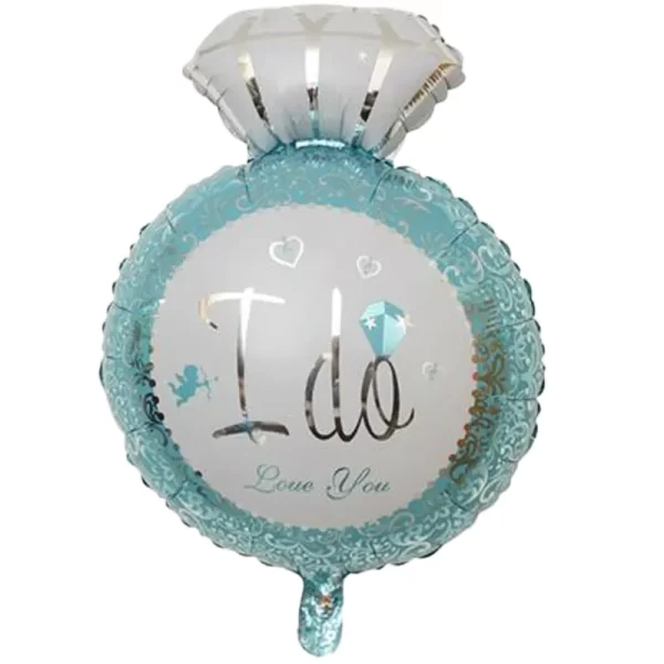 بادکنک فویلی حلقه ازدواج “I do” با رنگ آبی، مناسب برای جشن نامزدی و عقد.
