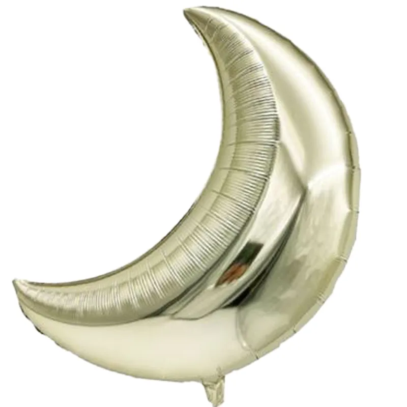بادکنک فویلی طرح ماه نیمه طلایی با کیفیت بالا و ظاهری شیک، مناسب برای انواع جشنها و تمهای تزئینی مدرن.