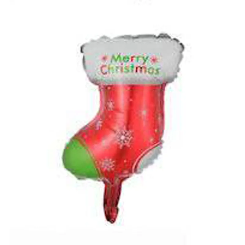 بادکنک فویلی جوراب کریسمس با طرح برفی و رنگهای شاد، مناسب جشنهای کریسمس و دکوراسیون زمستانی.
