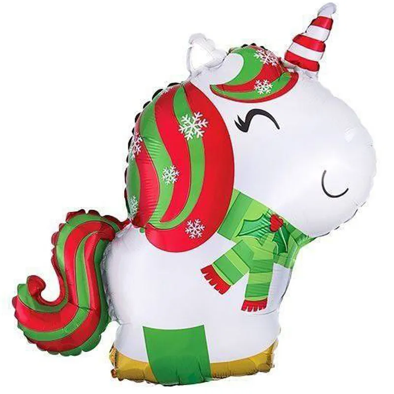 بادکنک فویلی یونیکورن کریسمسی، مناسب برای تزئین جشنهای کریسمس با طراحی شاد و جذاب.