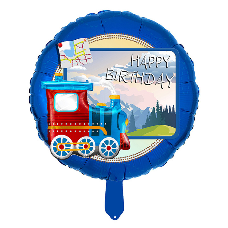 بادکنک فویلی گرد طرح قطار با رنگهای شاد و طراحی کارتونی، مناسب برای تزئین جشنهای تولد و مراسم کودکان، به ویژه دوستداران ماجراجویی و دنیای قطارها.