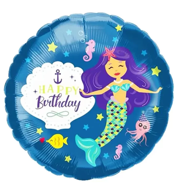 بادکنک فویلی گرد هپی طرح پری دریایی