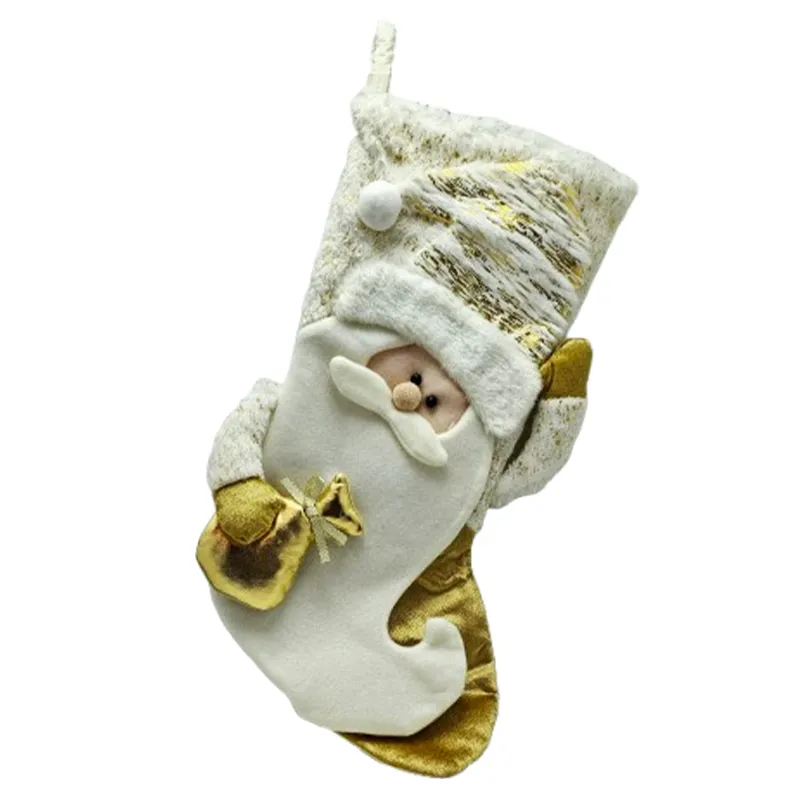 جوراب کریسمس طرح بابانوئل، با رنگ طلایی و سفید، مناسب برای تزئینات کریسمس و قرار دادن هدایا.