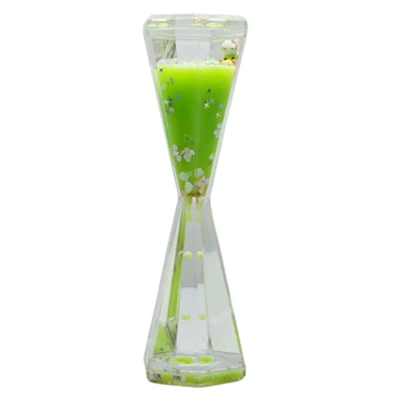 ساعت شنی دکوری با مایع سبز شفاف، مناسب برای تزئین فضا و هدیه.