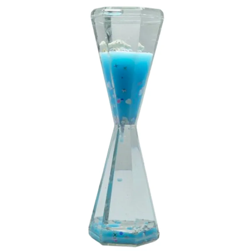 ساعت شنی دکوری با مایع آبی شفاف، مناسب برای تزئین و هدیه.