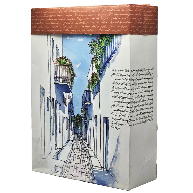 ساک دستی با طرح نقاشی کوچه خلوت، مناسب برای هدیه دادن با سبکی هنری و خاص.