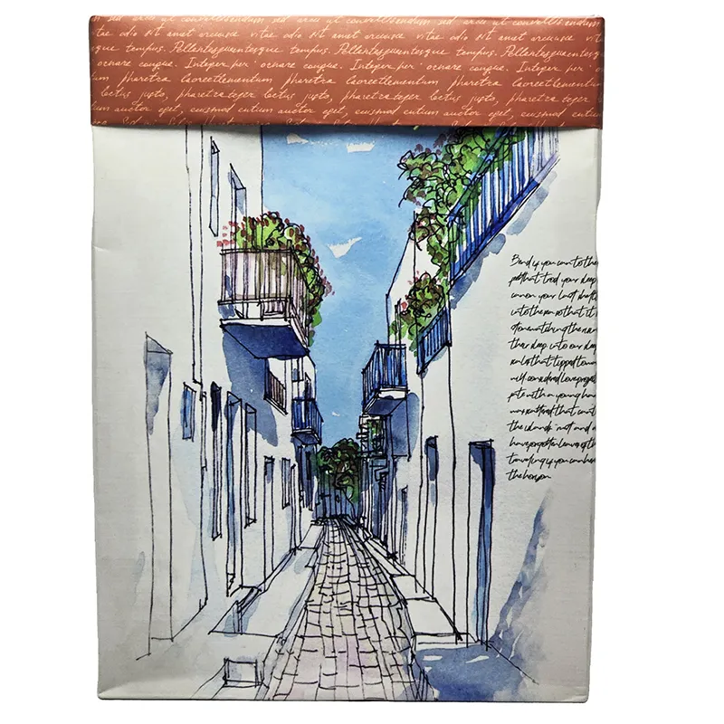 این ساک دستی زیبا با طرح یک کوچه آرام و خلوت، حس نوستالژی و آرامش را تداعی میکند. طراحی آبرنگی جذاب و ترکیب رنگهای ملایم آبی و سفید، جلوهای خاص و هنری به این محصول بخشیده است. متنهای دستنویس در کنارهها، به طراحی زیبایی خاصی افزودهاند. این ساک از جنس مقاوم و سبک ساخته شده و برای حمل هدایای کوچک و متوسط بسیار مناسب است. ایدهآل برای علاقهمندان به هنر و سبکهای مینیمالیستی و همچنین برای مناسبتهایی مانند تولد، ولنتاین یا هدیههای دوستانه.