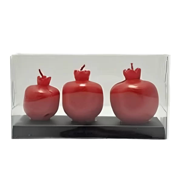 ست شمع طرح انار قرمز با طراحی شیک و منحصر‌به‌فرد، مناسب برای تزئین و ایجاد فضایی دلنشین در شب یلدا.
