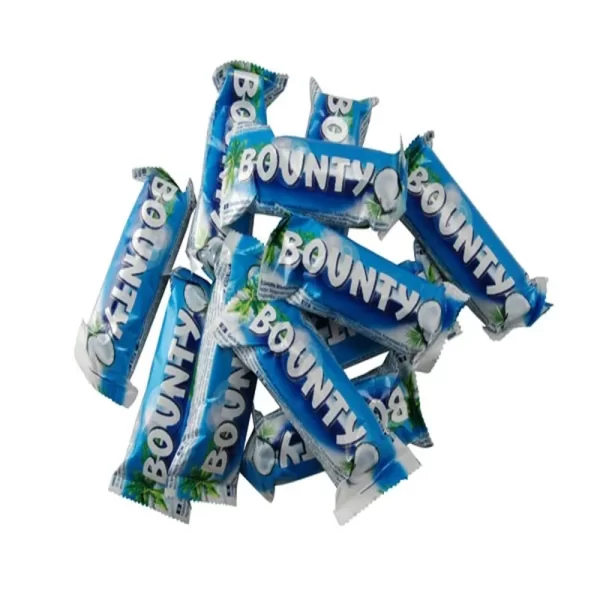 “شکلات کوچک Bounty با ترکیب نارگیل تازه و شکلات شیری، ایدهآل برای پذیرایی و میانوعده.”