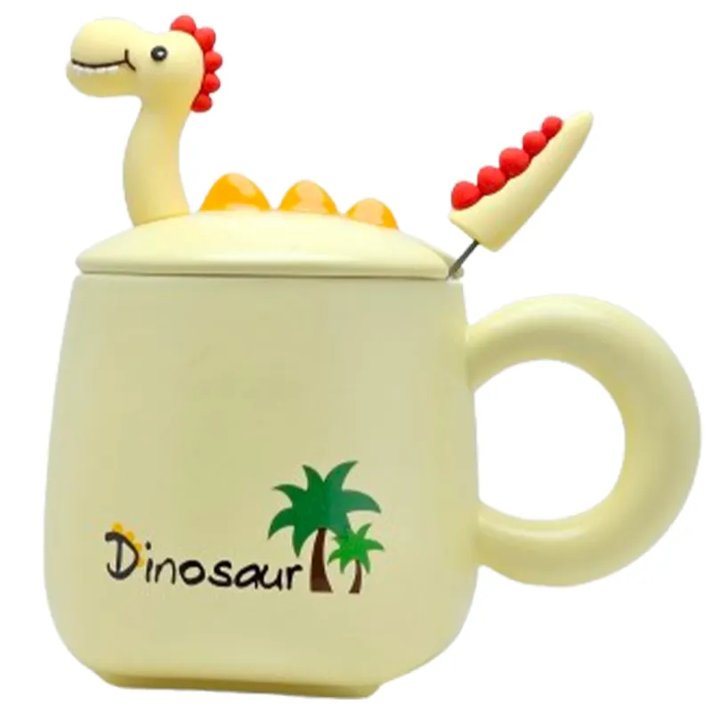 ماگ سرامیکی با طرح دایناسور، دارای درب و قاشق، مناسب برای هدیه و استفاده روزمره.