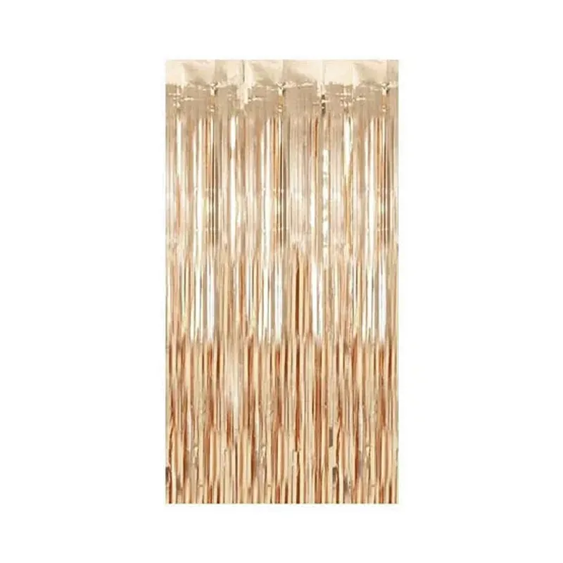 پرده تزیینی متالیک رزگلد، انتخابی شیک و براق برای تزئین پسزمینه جشنها و مهمانیها.