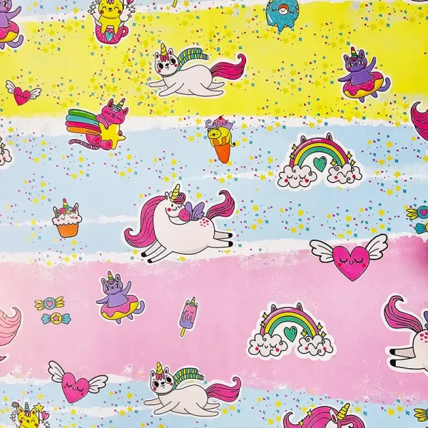 کاغذ کادو یونیکورن از کیفیت بالای چاپ و مواد مقاوم ساخته شده است و برای بستهبندی انواع هدایا مانند اسباببازیها، لباسها، لوازم جانبی، کتابها و دیگر هدایای کودکانه و حتی بزرگسالان مناسب است. اگر به دنبال کاغذ کادو برای کودکانی هستید که عاشق دنیای فانتزی و موجودات افسانهای هستند، این کاغذ کادو با طرح یونیکورن انتخابی ایدهآل است.
