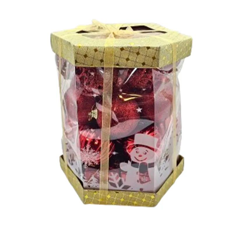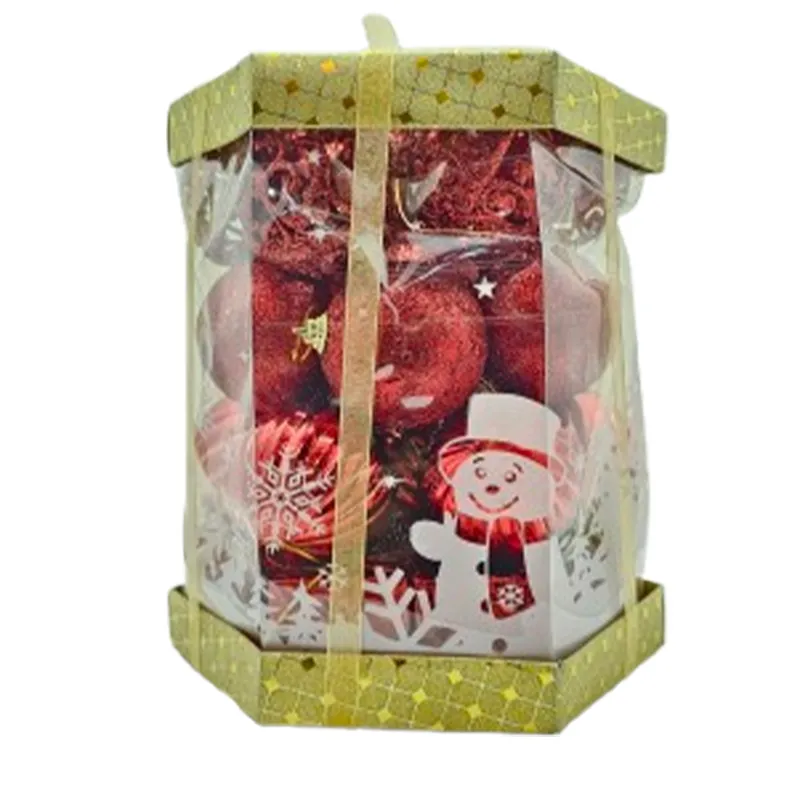 ست گویهای کریسمس قرمز با بستهبندی شیک، مناسب برای تزئین درخت و دکوراسیون.