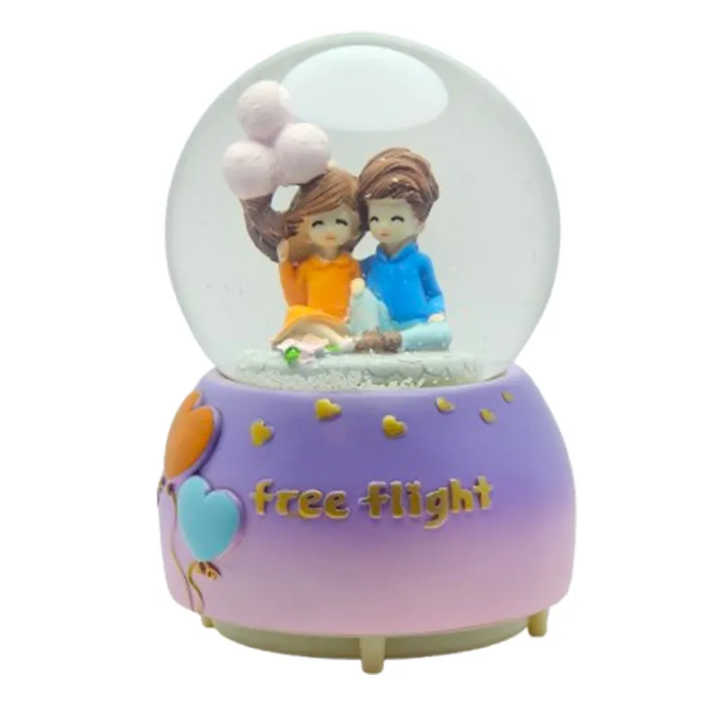 گوی موزیکال با طراحی زوج عاشق و نوشته “Free Flight”، مناسب برای هدیههای عاشقانه و تزئین دکوراسیون.